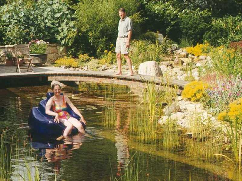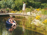Rosie and brother David enjoying the pond in the new garden.(This one is for every one who does not believe that we swim in it) |