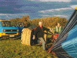 Landing was even more exciting, we were dragged several hundred feet with the balloon basket in this position. |