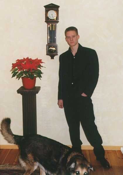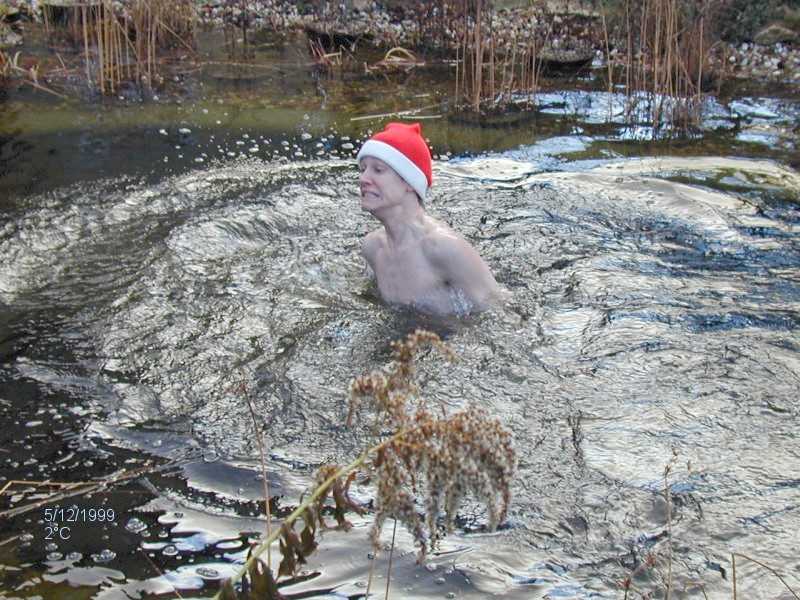 Niels enjoying? the pond on 5.12.1999. Water temperature 2° C. |